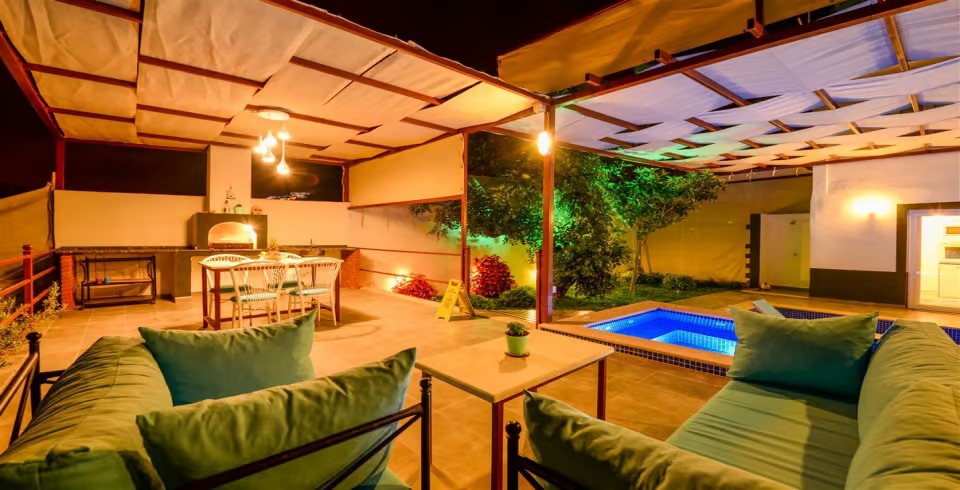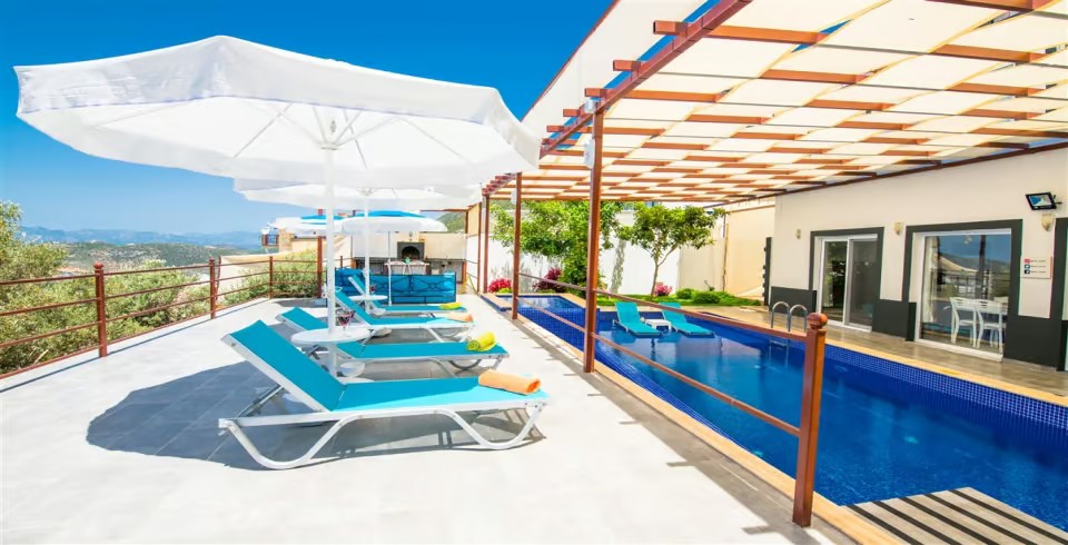 Havuz ve Bahçe : Villamızın özel yüzme havuzun muhafazakar olup dışardan kesinlikle görünmemektedir. Şezlong, şemsiye, yemek masası, barbekü bulunmaktadır.
