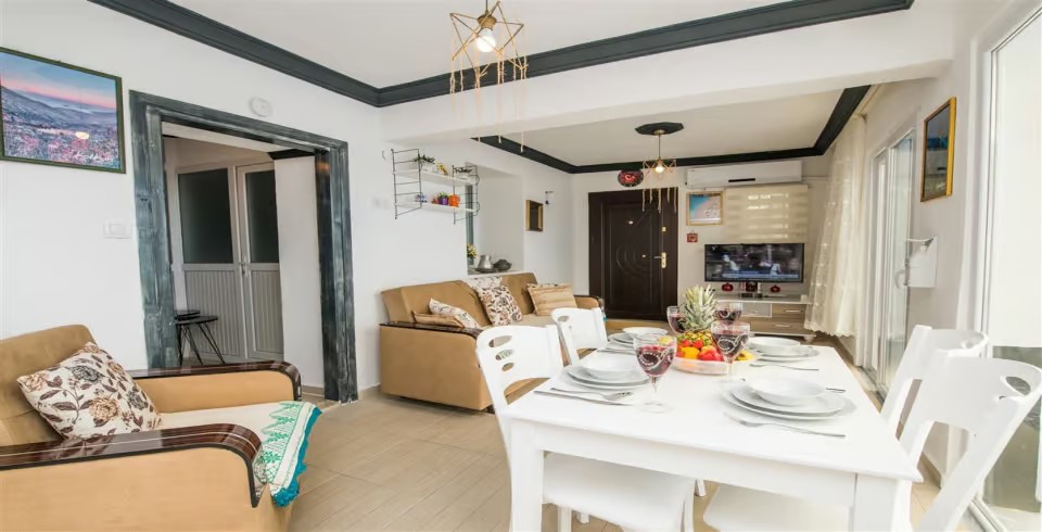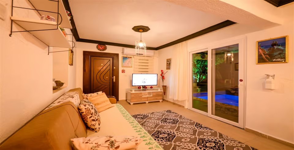 Salon : Villamızın salonunda oturma grubu, TV, internet, yemek masası, sehpa bulunmaktadır.