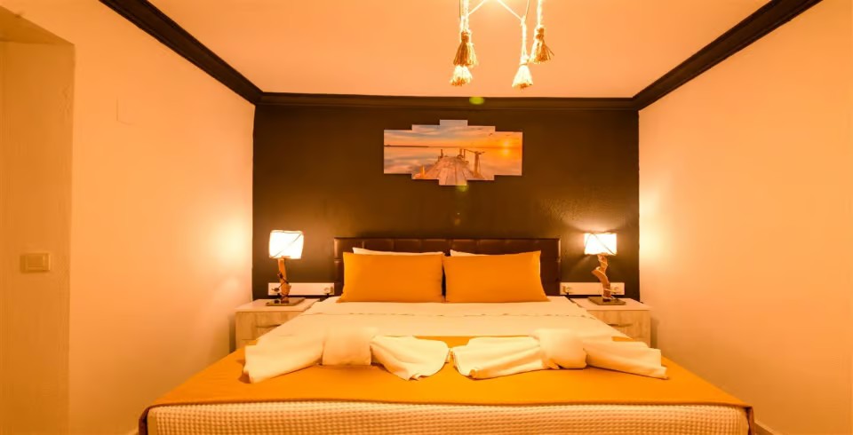 1. Yatak Odası : Çift kişilik yatak, klima, makyaj masası, banyo ve tuvalet bulunmaktadır.