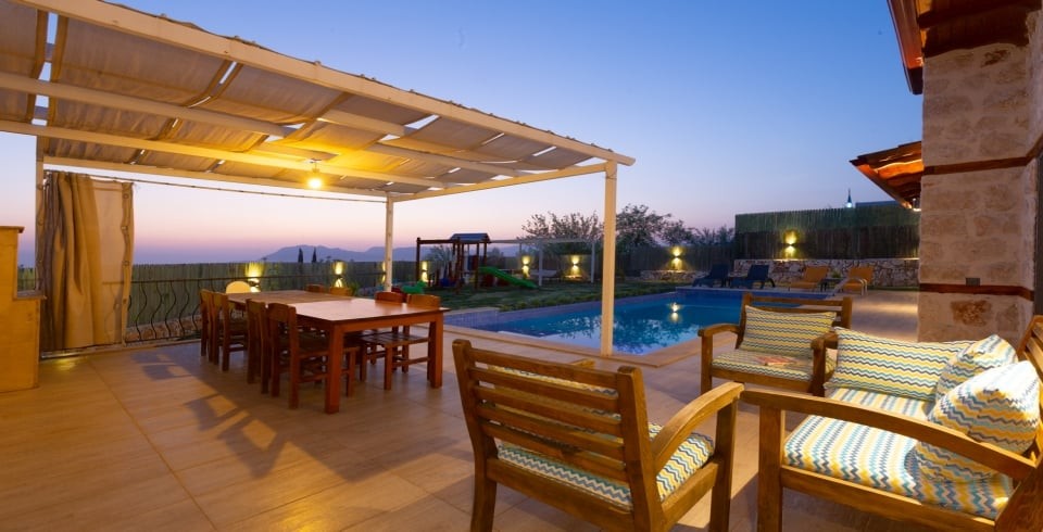 Villa Chakra Kalkan Üzümlü bölgesinde yer almakta olan villamız  2 yatak odalı 4 kişilik kapasiteye sahip olan villamız balayı çiftleri ve çekirdek aileler için ideal seçeneklerimiz arasındadır. Villamız, son derece rahat ve konforlu mobilyalarla dizayn edilmiştir Suit yatak odasında jakuzi ve ısıtmalı kapalı havuz bulunmaktadır. Muhafazakar villamızda sizi konuk etmekten mutluluk duyarız.