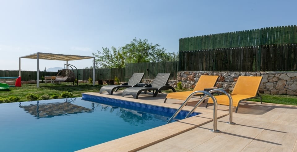 Havuz ve Bahçe: Villamızın havuzu ise etrafı dışarıdan görülmeyecek şekilde korunaklı olup sizlere huzurlu ve keyifli havuz deneyimi sunmaktadır. Bahçe mobilyası, barbekü, salıncak,  şezlong ve güneş şemsiyesi bulunmaktadır.