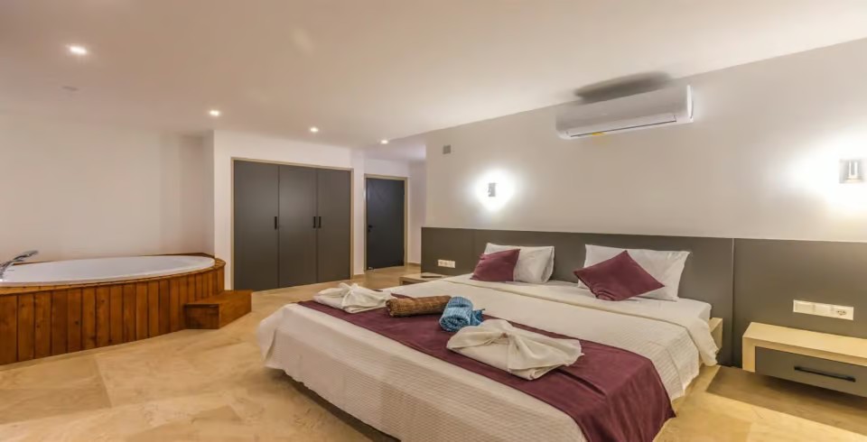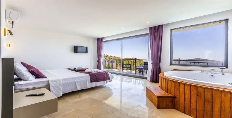 Etkileyici deniz manzarasına sahip villamızda tatiliniz boyunca konforu en üst düzeyde yaşayabilirsiniz. İçerisinde kapalı havuz, çift kişilik jakuzi, sauna ve hamam gibi özel alanlar yer almakta olup, yılın tüm yorgunluğunu atabileceğiniz rahatlatıcı bir atmosfer sunulmaktadır.