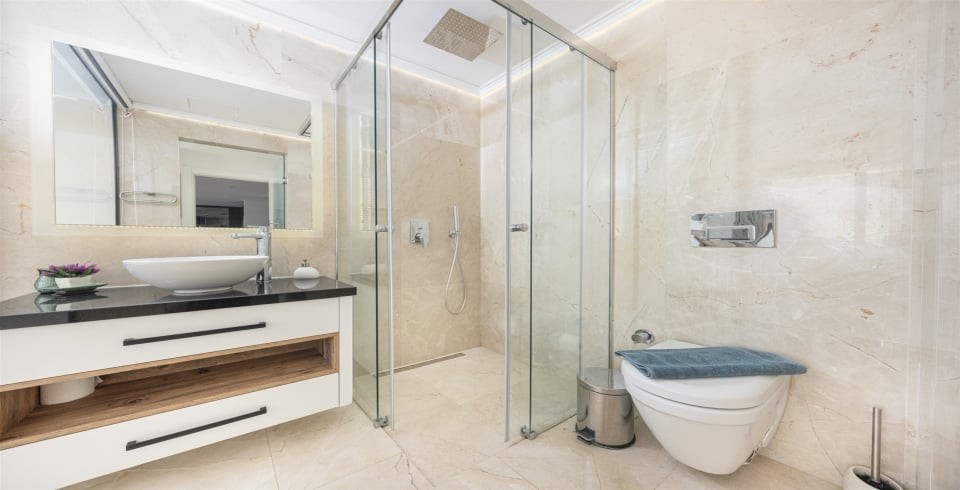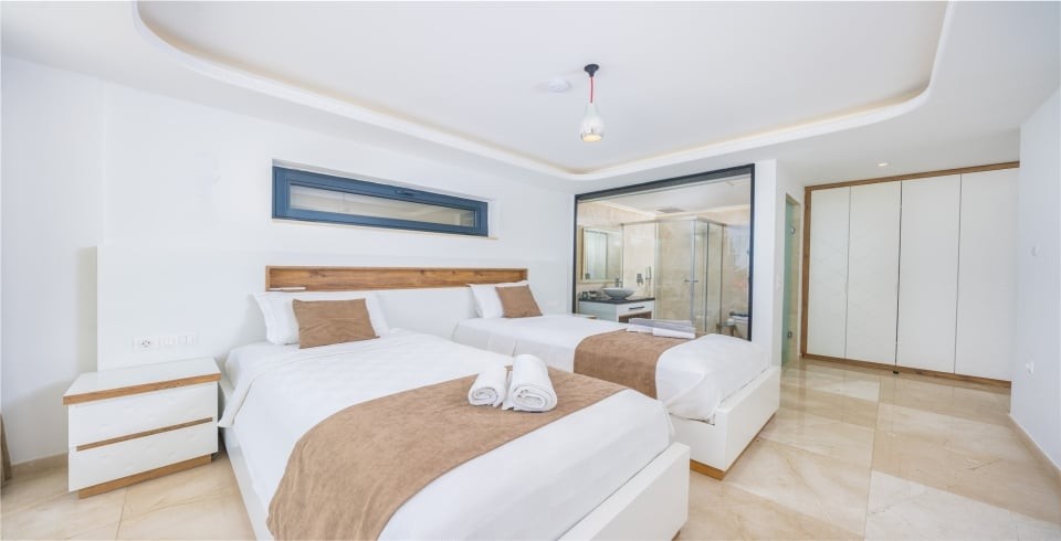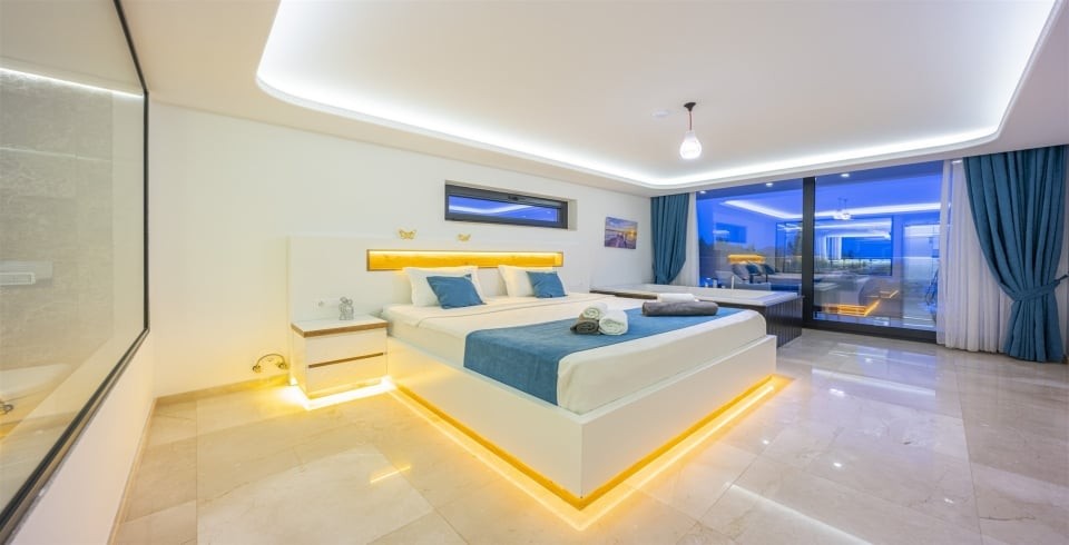 3. Yatak Odası : Çift kişilik yatak, Komodin, klima, Makyaj masası, deniz manzaralı balkon, elbise dolabı, jakuzi, banyo ve lavabo bulunmaktadır.