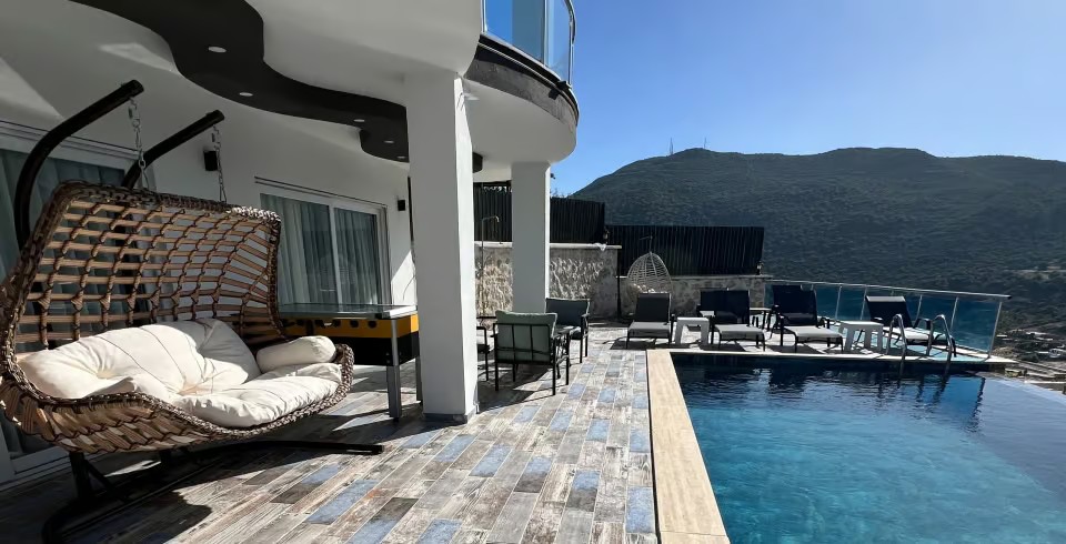 Kalkan’ın Sarıbelen mevkiinde, doğayla iç içe huzurlu bir konumda yer alan bu villamız, şehir hayatının yoğun temposundan uzaklaşmak ve temiz havanın keyfini çıkarmak isteyen misafirlerimiz için ideal bir seçenektir. Havuzu dışarıdan görünmeyen yapısı sayesinde, muhafazakar aileler için de konforlu bir tatil imkanı sunar.