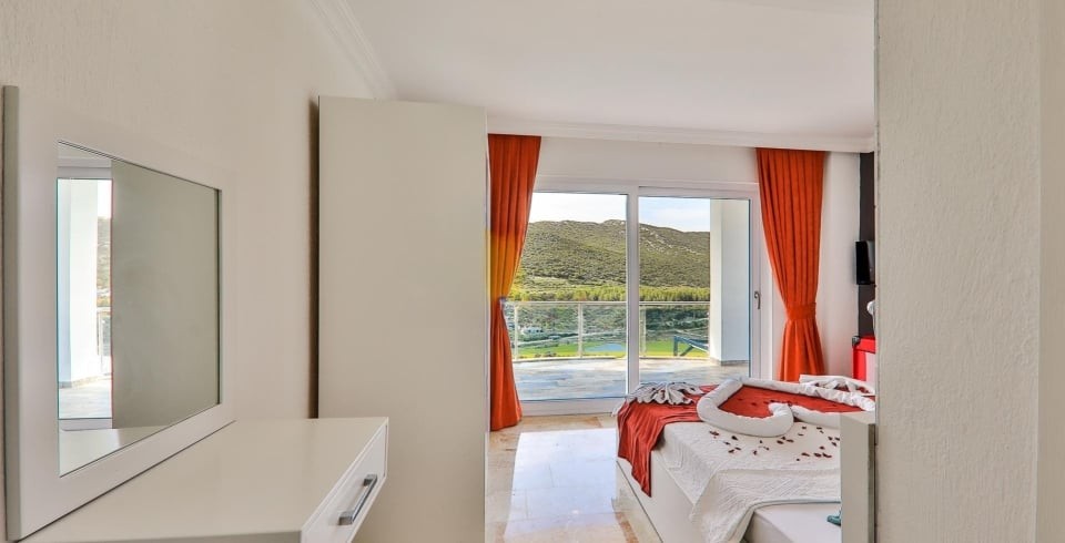 3. Yatak Odası : 1 adet çift kişilik yatak, komodin, klima, makyaj masası, banyo ve lavabo bulunmaktadır.