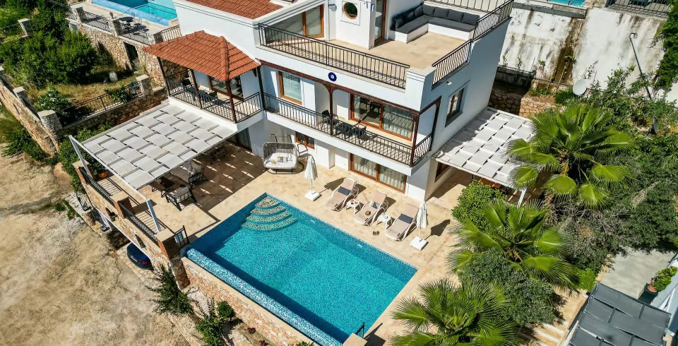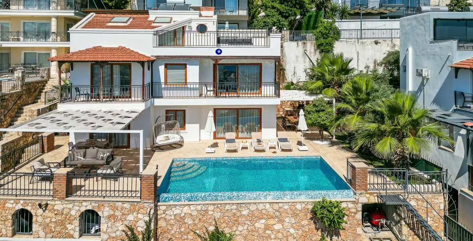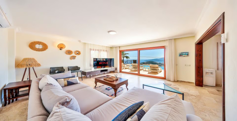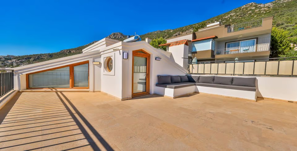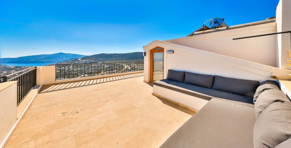 Deniz manzarasıyla büyüleyen bu özel villa, aynı zamanda denize ve merkezi noktalara oldukça yakın bir konumdadır. Gün batımını terastan izlerken Kalkan’ın eşsiz maviliğine karşı kahvenizi yudumlayabilirsiniz.