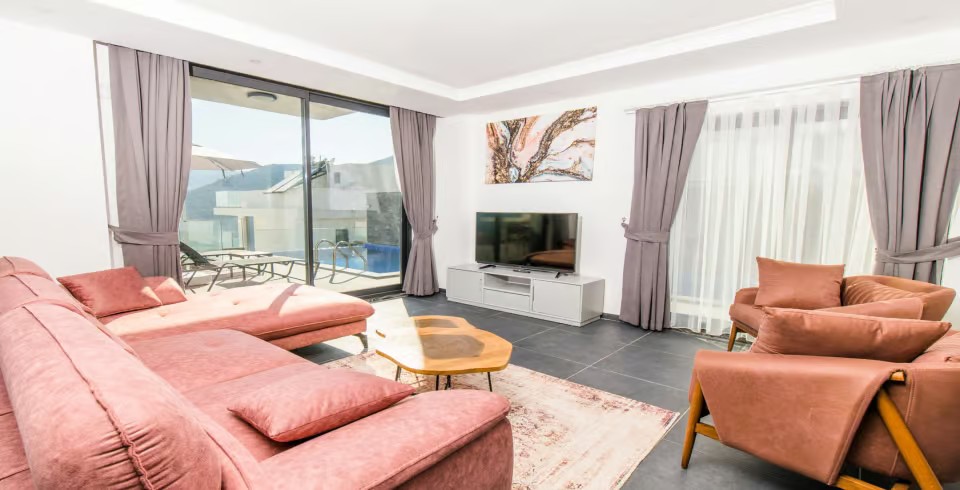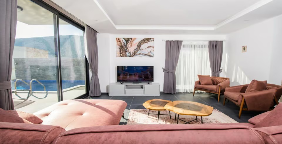 Salon: Villamızın salonunda ; oturma grubu, TV, uydu alıcısı, klima, sehpa ve kablosuz modem yer almaktadır.