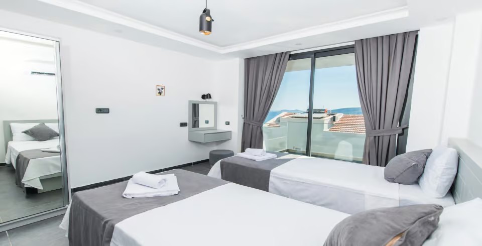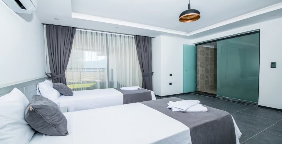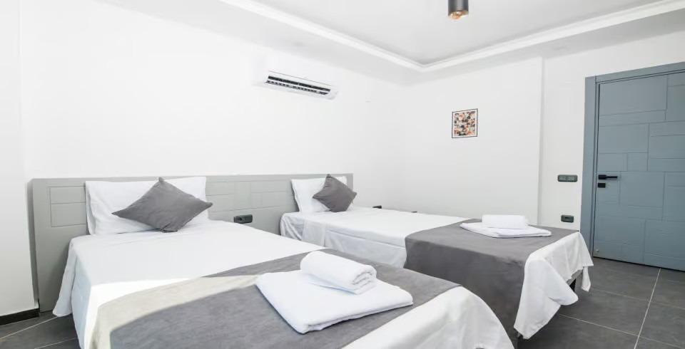 3. Yatak Odası : 2 adet tek kişilik yatak, klima, komodin, makyaj masası, elbise dolabı ve banyo tuvalet bulunmaktadır. (Yataklar birleştirilebilir)