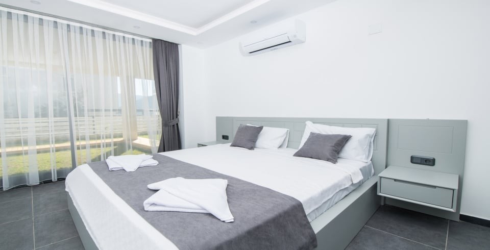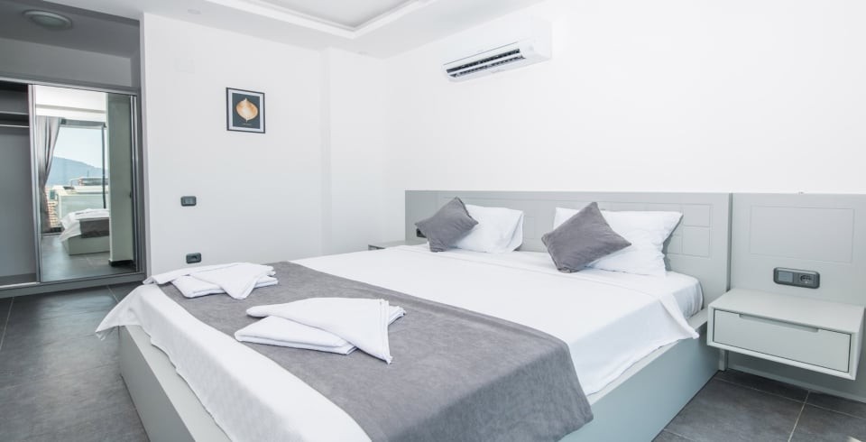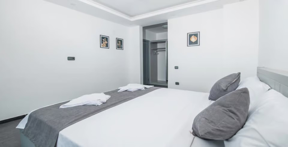 2. Yatak Odası : 1 adet çift kişilik yatak, klima, komodin, makyaj masası, elbise dolabı ve banyo tuvalet bulunmaktadır.