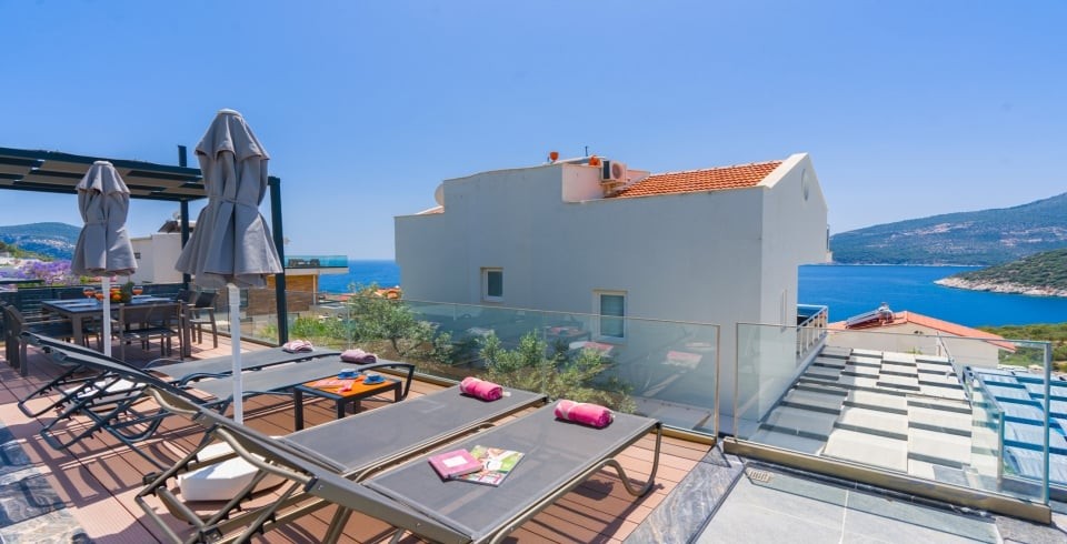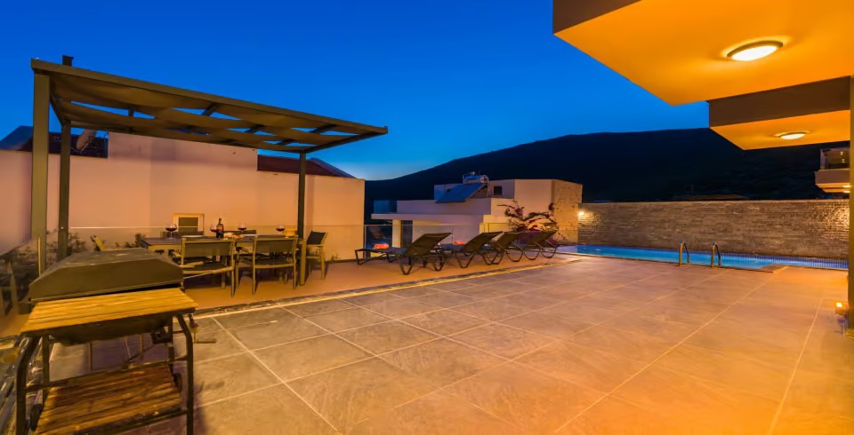 Kiralık tatil villamız, Kalkan mahallesinin Kalamar Mevkisinde konumlanmıştır. Doğa ile iç içe olan tatil villamız, deniz manzaralı bir villadır. Villa Deida, merkeze ortalama 2 km mesafede bulunmaktadır. Villa Deida havuz terası oldukça keyif alabileceğiniz tarzda dekore edilmiştir.