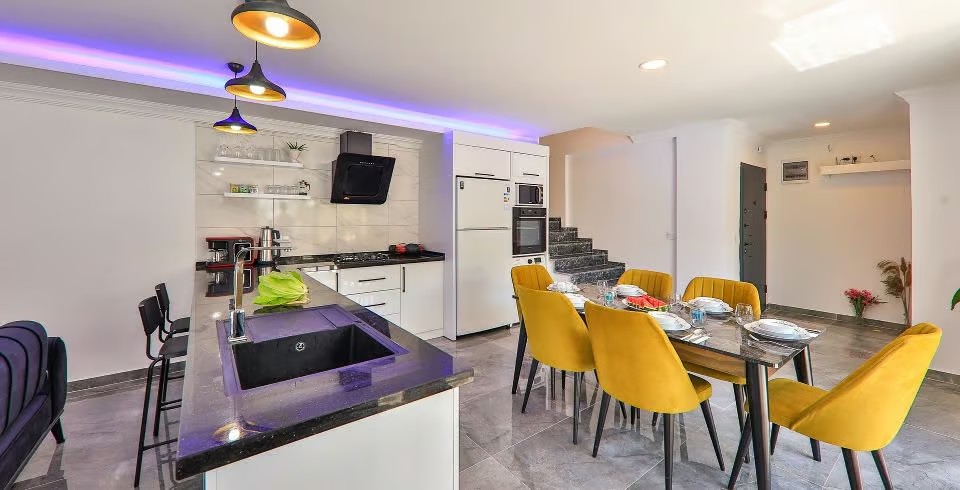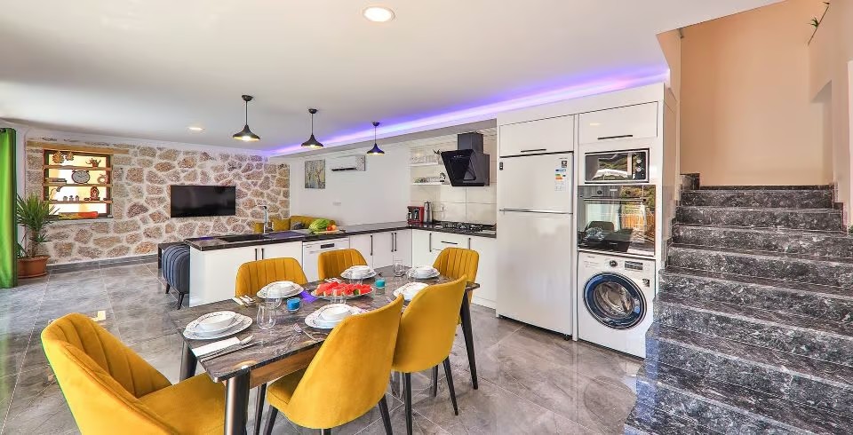 Mutfak: Villamızın mutfağında buzdolabı bulaşık makinası, çamaşır makinası, 4 lü ocak, ketıl, yemek takımı bulunmaktadır.