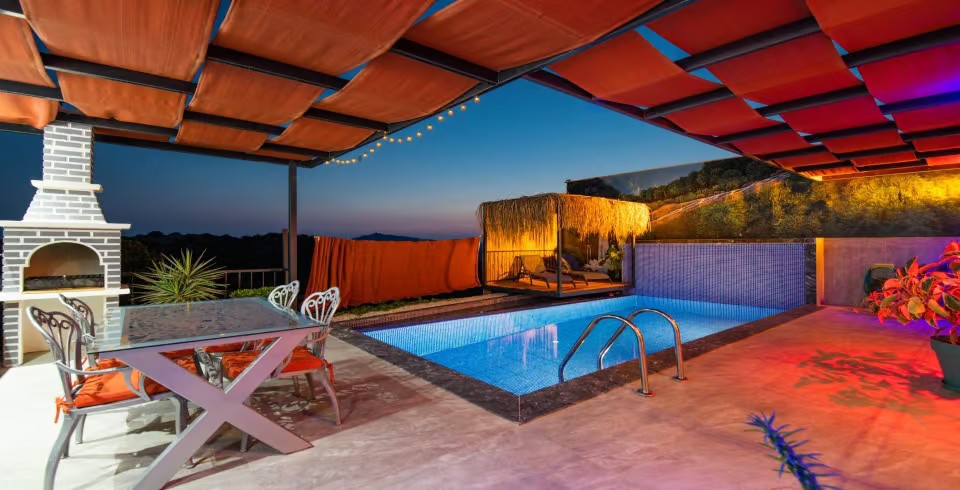 Villa Demir, Kalkan Kördere'de yer alan, 2 kişilik kapasitesiyle balayı çiftleri için özel olarak tasarlanmış lüks bir villadır. Korunaklı özel havuzu ve jakuzisiyle hem mahremiyet hem de konfor sunar. Doğa manzarası eşliğinde keyifli anlar yaşamanız için ideal bir konaklama imkanı sunar. Bahçesi, barbekü alanı ve modern tasarımıyla unutulmaz bir tatil deneyimi için mükemmel bir seçenektir.