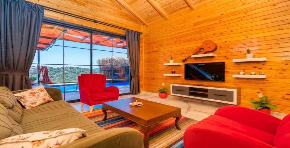 Salon : Havuz terasına direkt çıkışı olan salonumuzda televizyon, modem, oturma grubu, klima, sehpa bulunmaktadır.