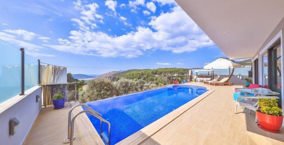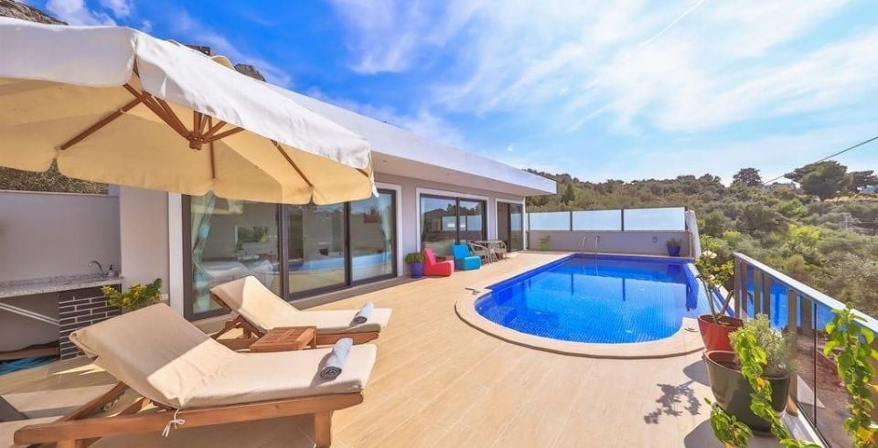 Doğayla iç içe, jakuzili ve korunaklı havuzlu balayı villası arayan çiftler için Villa Deniz, Kalkan’da unutulmaz bir tatil sunar.
