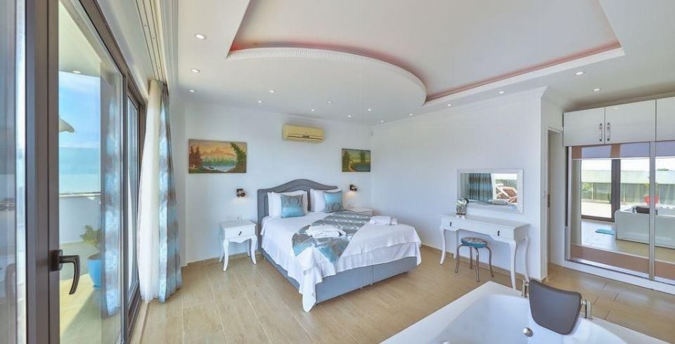 1. Yatak Odası : 1 adet çift kişilik yatak, klima, komodin, elbise dolabı, makyaj masası, jakuzi, banyo ve tuvalet bulunmaktadır.