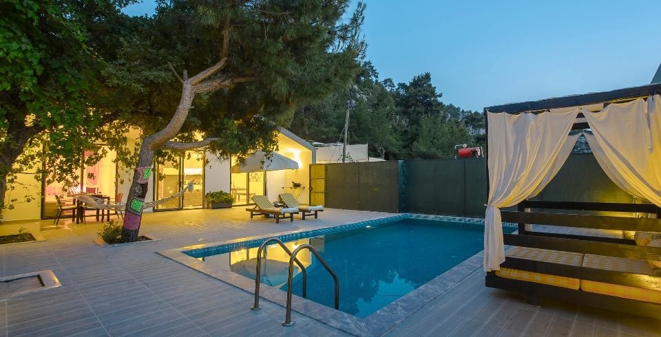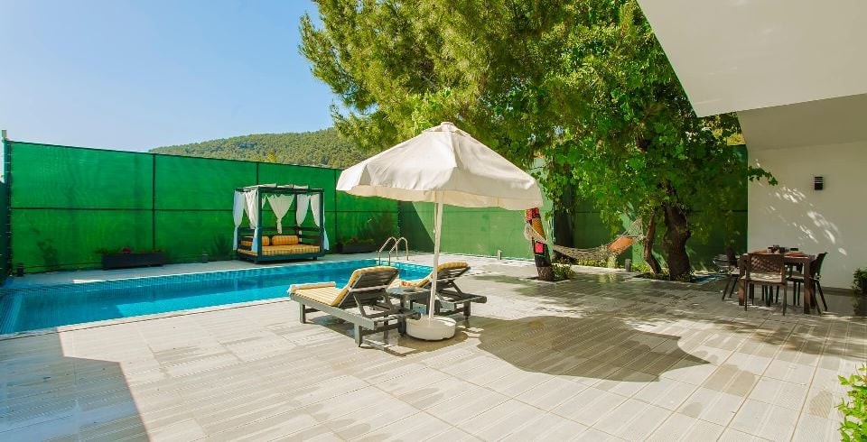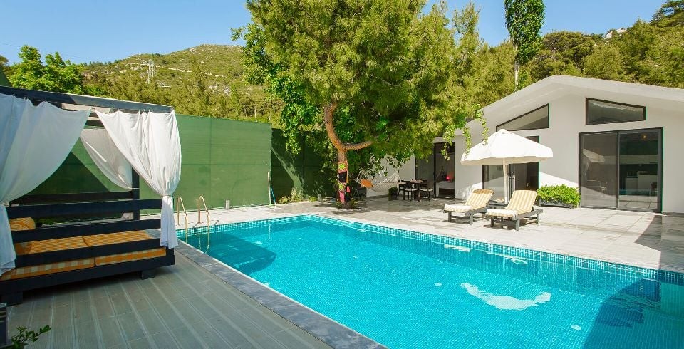 Havuz : Villamızın havuzu ise etrafı dışarıdan görülmeyecek şekilde korunaklı olup sizlere huzurlu ve keyifli havuz deneyimi sunmaktadır. Size özel muhafazakâr yüzme havuzu, şezlong keyfi ve şemsiye ile yazın en güzel günlerinde sizleri bekliyor.