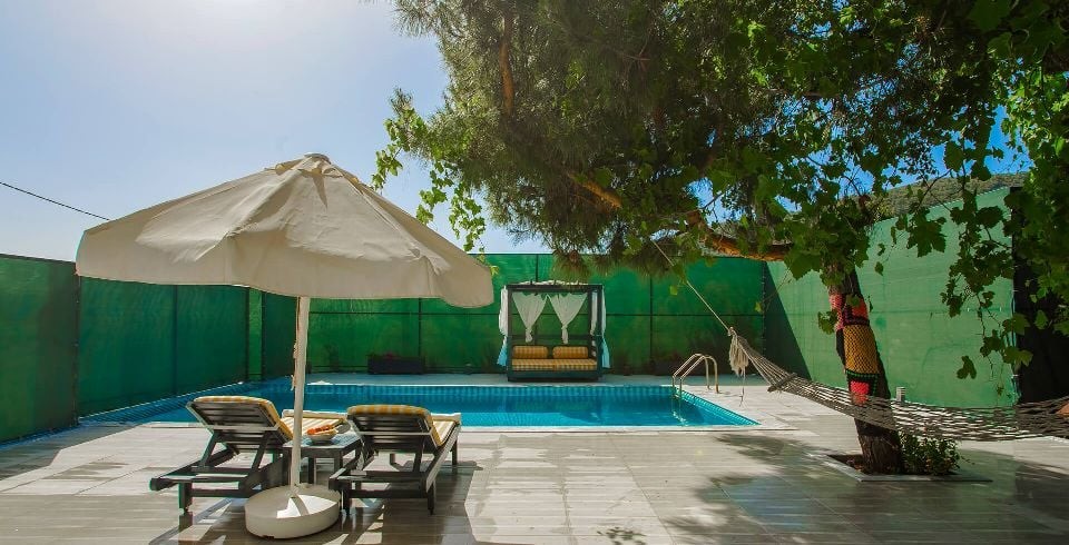 Villa Derin, Kalkan İslamlar bölgesinde bulunmakta olup 2 kişilik kapasitesi ile 1 yatak odasına sahiptir. Doğa içerisinde tamamen korunaklı olup dış mimarisi, iç mimarisi tamamen sade ve lüks eşyalarla döşenmiştir. Muhafazakâr villamız balayı çiftleri için tasarlanmış olup tamamen korunaklı bir tatil sunmuştur. Özel ışıklandırmalar villa etrafında ve içerisine döşenmiştir. Bu sayede akşam vakti çok şık bir ışıklandırmayla havuz ve bahçe keyfini çıkartabilirsiniz. Bu son derece lüks villamız, 1 yatak odasında da jakuzi bulunmakla beraber tüm odaları özel olarak dizayn edilmiş tüm eşyaları son kalite eşyalarla döşenmiştir. Villamızın içerisi ferah ve geniştir, her odasında klima gibi ihtiyacınız olan tüm eşyalar bulunmaktadır. Villamızın havuz terası ve havuzu korunaklı hale getirilerek hem muhafazakâr aileler hem de balayı çiftleri için özel hale getirilmiştir. Villamızın bahçe terası geniştir, bu sayede havuz ve bahçe keyfi yapabilirsiniz. Villamız Kalkan merkeze araç ile 10 dakikalık mesafede bulunur ve aynı zamanda market, restaurant gibi mekanlara da yakındır.