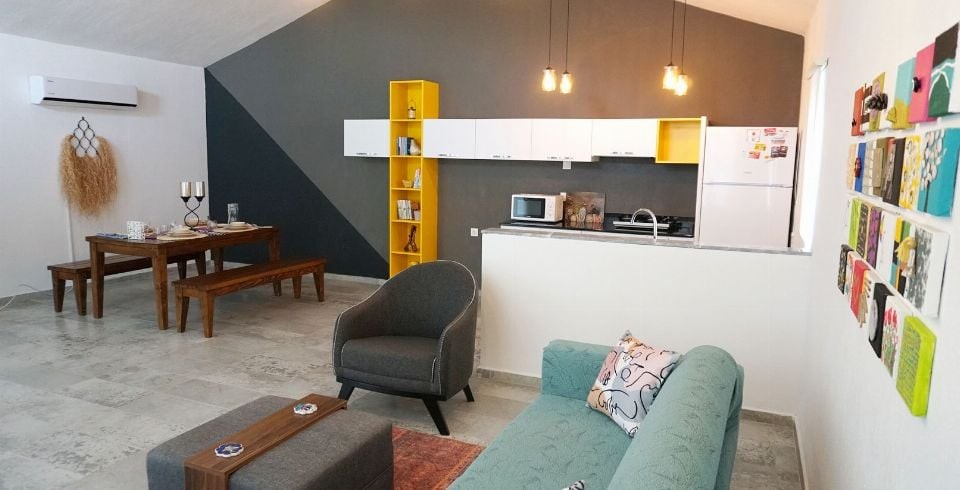 Mutfak : Villamızın geniş Amerikan mutfağı ile sizlere kendi evinizin mutfağı gibi hissettirecek. Ayrıca mutfakta klima, bulaşık makinası, buzdolabı, çamaşır makinası, mikrodalga fırın, tost makinası, ekmek kızartma, su ısıtıcısı, fırın, 4'lü ocak seti ve 4 kişilik geniş yemek masası ile tava tencere vb. mutfak araç gereçlerini kullanma fırsatını sizlere sunuyoruz.