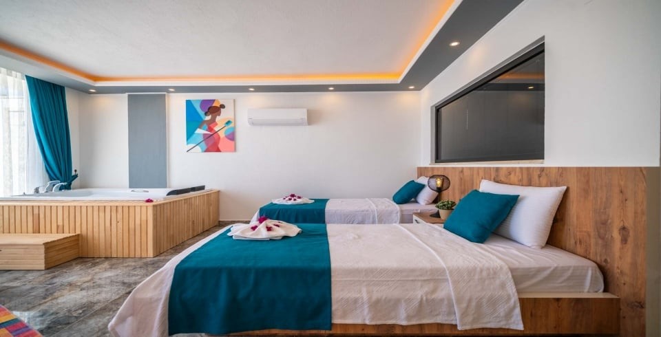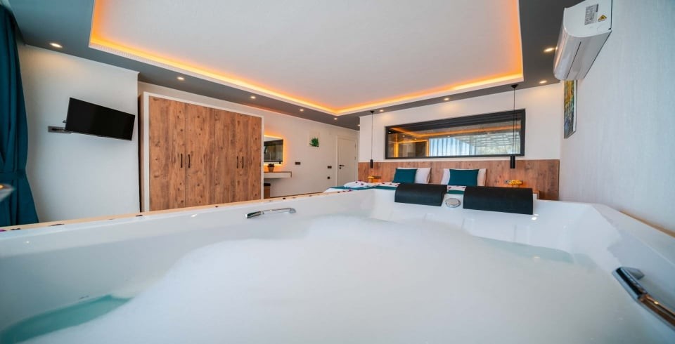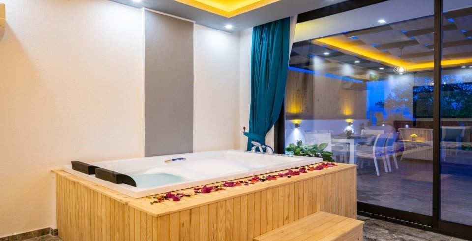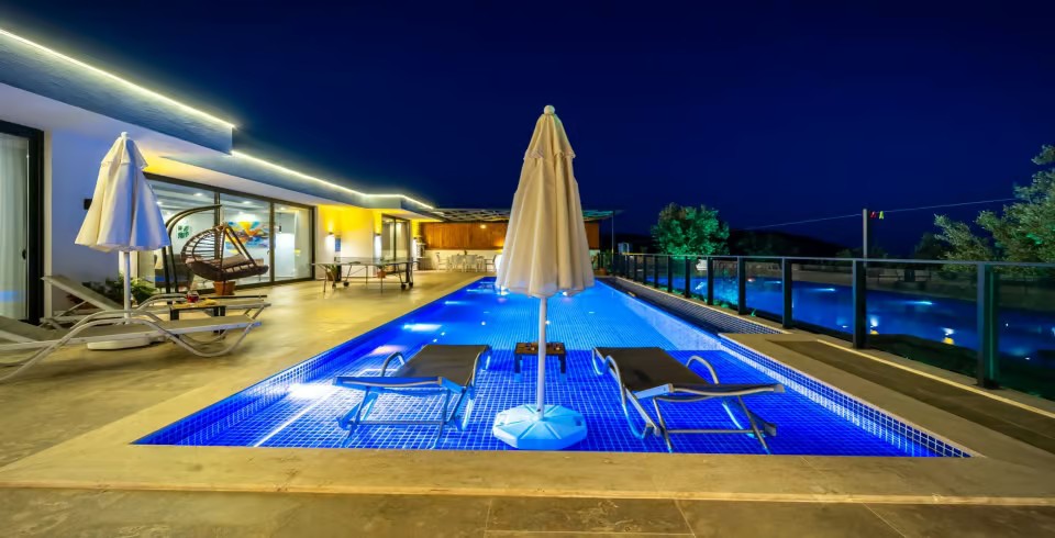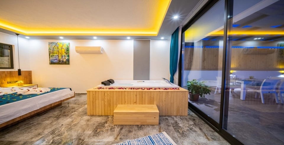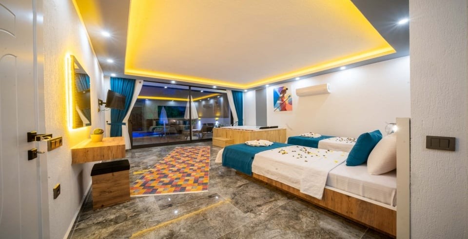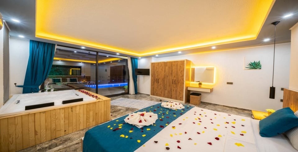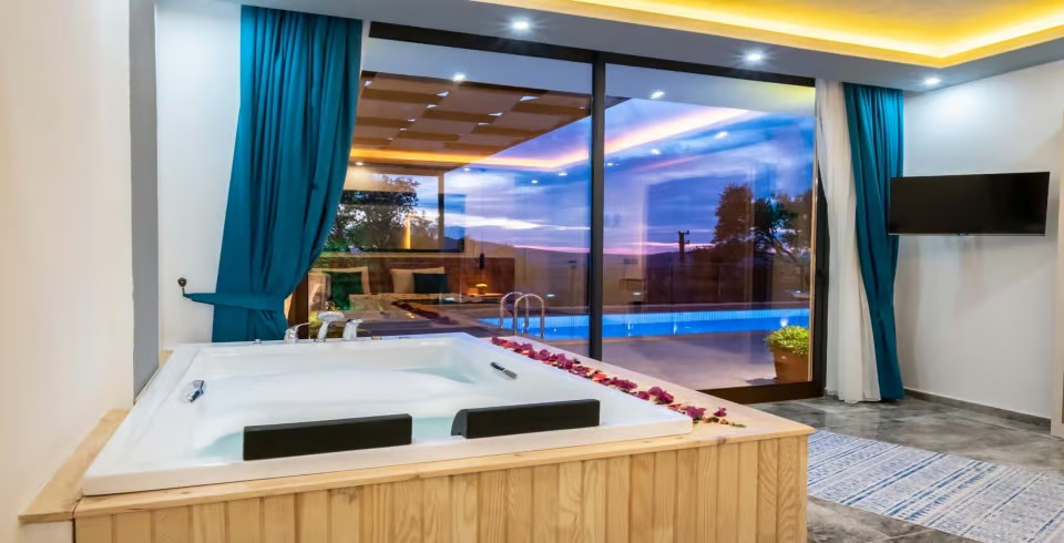 Villa Desde Duo, Kalkan’ın Kördere bölgesinde doğa ve deniz manzarasına hakim, korunaklı havuzlu bir villadır. İki yatak odası ve iki banyosu ile 4 kişiye kadar konaklama kapasitesi sunar. Her iki yatak odasında da özel jakuzi yer alır; bu özellik villayı özellikle balayı çiftleri ve lüks konfor arayanlar için cazip kılar.