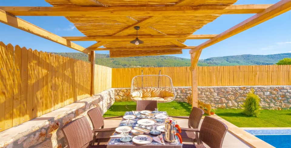 Villa Dessa, Kaş'ın pitoresk Hacıoğlan Köyü'nde yer alan 2 yatak odalı ve 4 kişilik kapasiteli bir tatil mekanıdır. Bu benzersiz kaçış noktası, özel yüzme havuzu ve çocuk havuzu ile doğayla iç içe huzurlu bir tatil sunar. Muhafazakar aileler için ideal olan Villa Dessa, gizlilik içinde doğa ile bütünleşik bir tatil deneyimi yaşatır. Günlük hayatın stresinden uzaklaşmak ve bu özel mekanda huzur ve rahatlama bulmak için kendinizi şımartın.