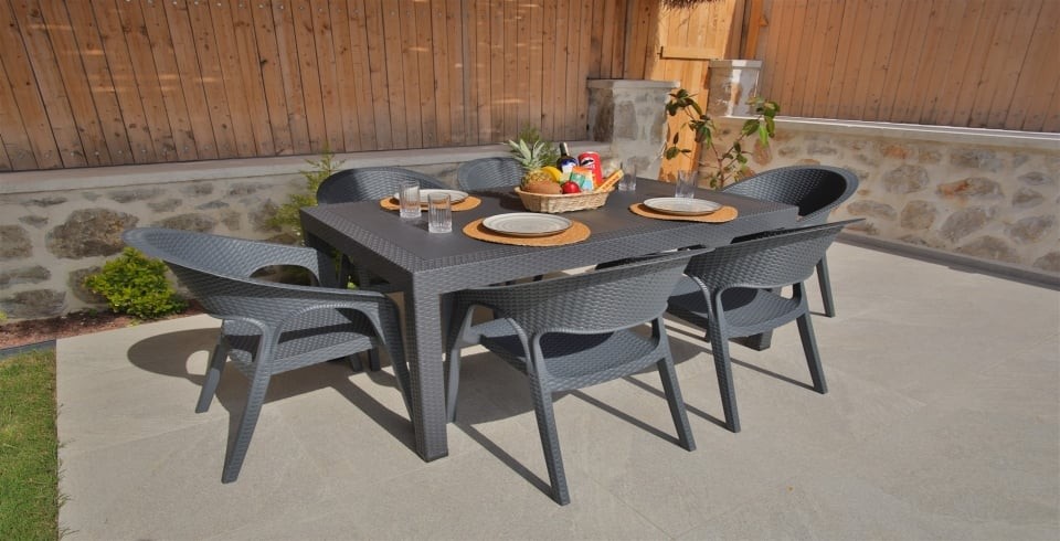 Salon: Villa salonunda konforlu oturma grubu, klima, TV, internet, uydu alıcı, yemek masası, sehpa bulunmaktadır.