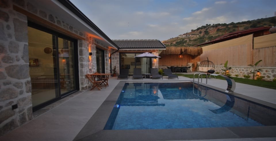 Villamız Fethiye Çalıca bölgesinde yer almaktadır. 2 yatak odasına sahip tatil villamız 4 kişilik konaklama kapasitesine sahiptir. Doğa içinde bir konuma sahip olan tatil villamızın havuz alanı sizlere keyifli bir tatil ortamı sunmaktadır. Balayı çiftleri ve çekirdek aileler için ideal bir seçenek olan muhafazakar hassasiyete sahip misafirlerimiz içinde uygun bir tatil ortamı sunmaktadır.