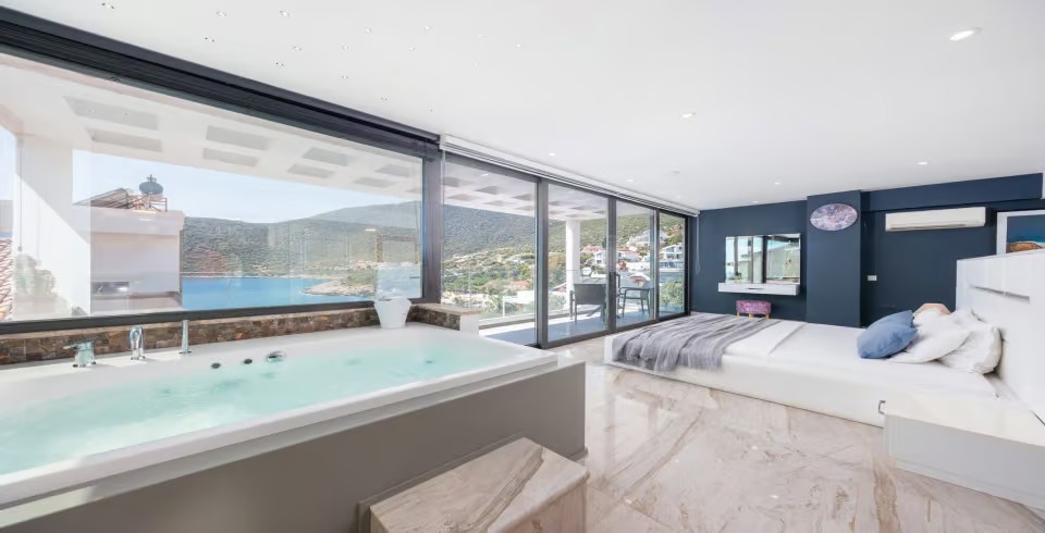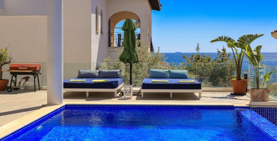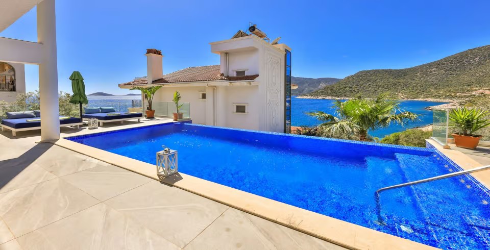 Kalkan kalamar mevkisin de bulunan 4 yatak odalı denize sıfır kiralık lüks villamız 8 kişilik konaklama kapasitesine sahiptir. Muhteşem deniz ve doğa manzarasına sahip villamızın özel yüzme havuzu bulunmaktadır.