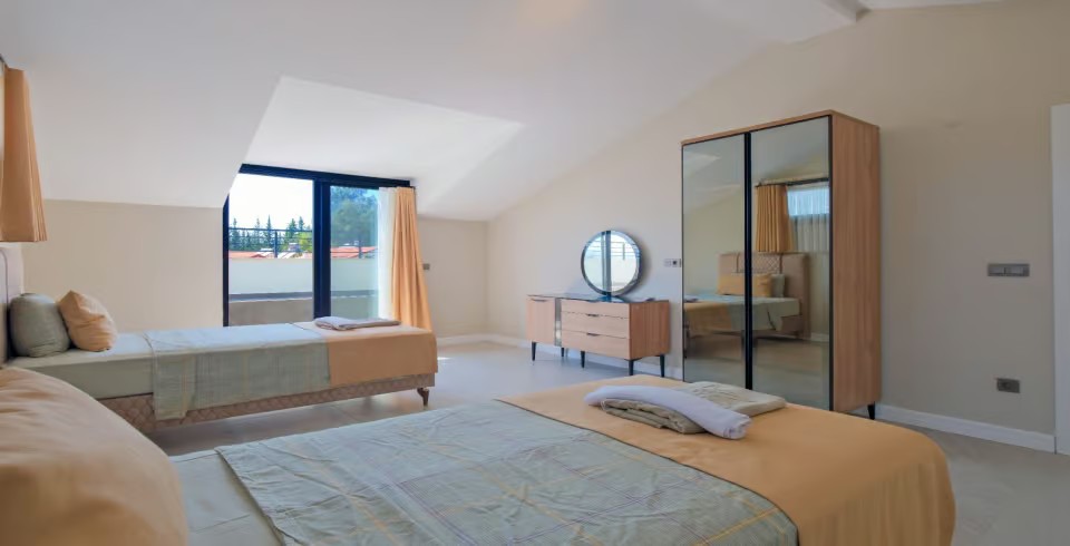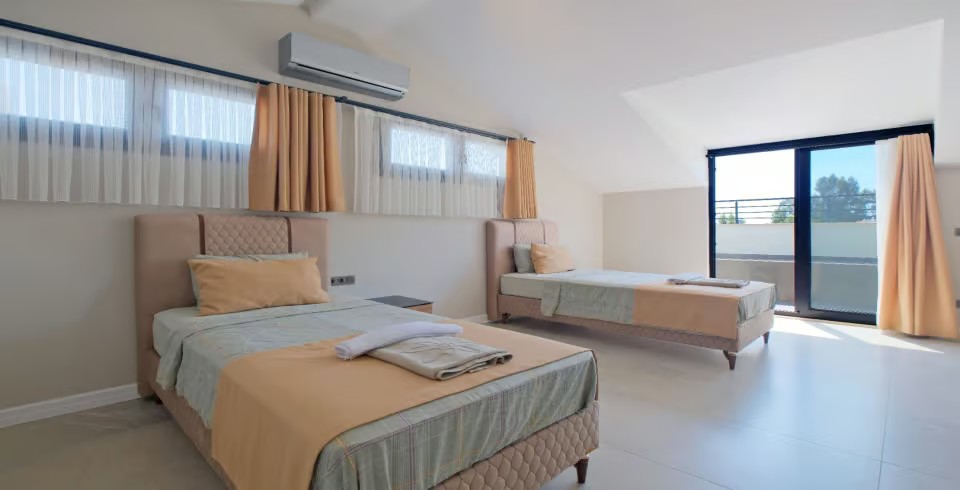 3. Yatak Odası : 2 adet tek  kişilik yatak, klima, komodin, elbise dolabı, makyaj masası, banyo ve tuvalet bulunmaktadır.