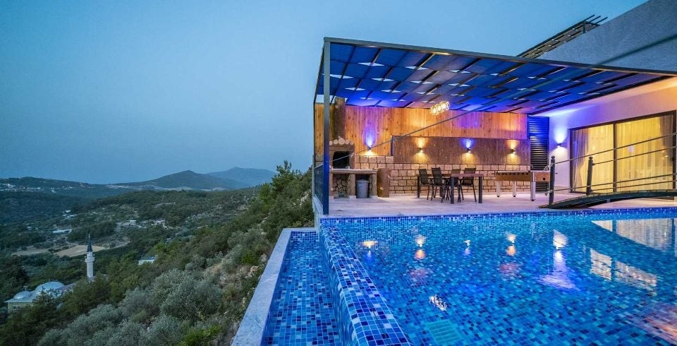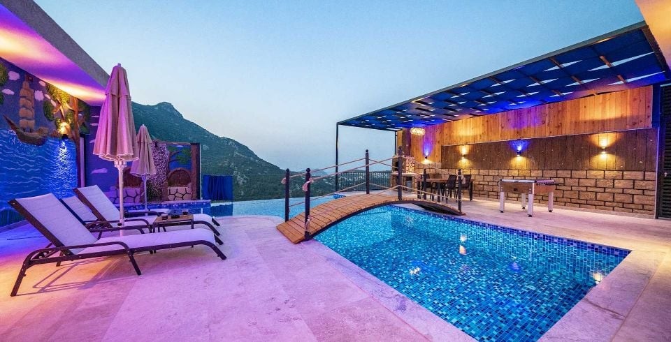 Kalkan’ın doğayla iç içe, huzurlu İslamlar Köyü’nde yer alan Villa Dimare 2, sessiz ve sakin bir tatil arayan misafirler için mükemmel bir kaçış noktasıdır. Havuzu korunaklı olan bu özel villa, mahremiyete önem veren muhafazakâr aileler ve balayı çiftleri için ideal bir konaklama imkânı sunar. Doğanın içinde konumlanan villadan yemyeşil tepelerin ve masmavi gökyüzünün eşsiz manzarası izlenebilir.