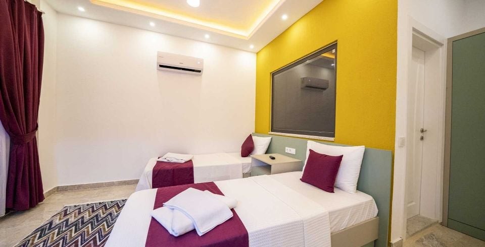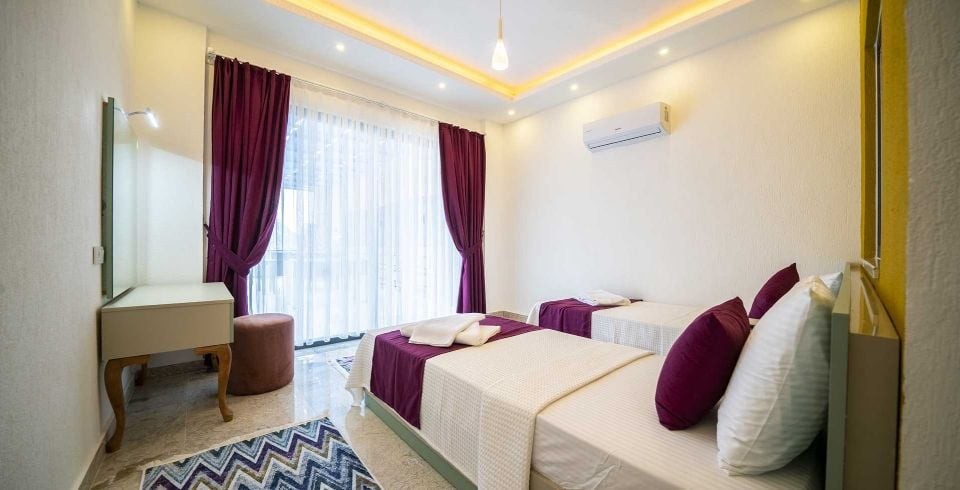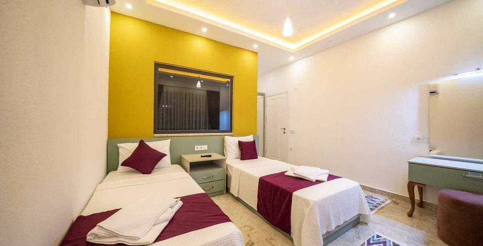 2. Yatak Odası: 2 Tek  Kişilik Yatak, Klima, Elbise Dolabı, Komodin, Makyaj Masası, banyo ve tuvalet bulunmaktadır.