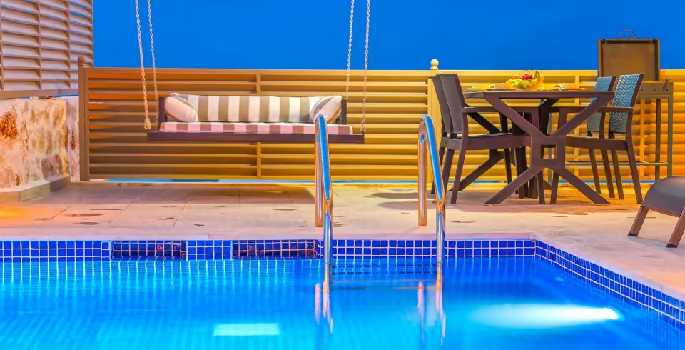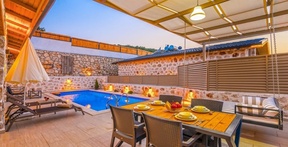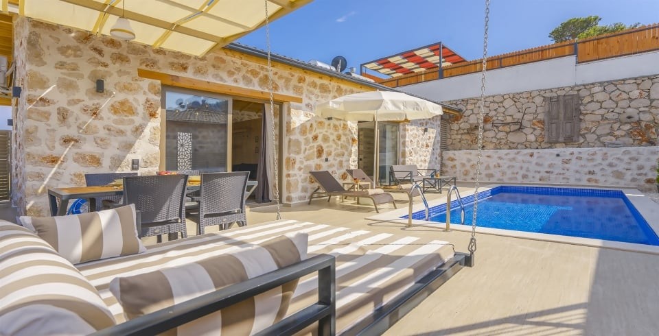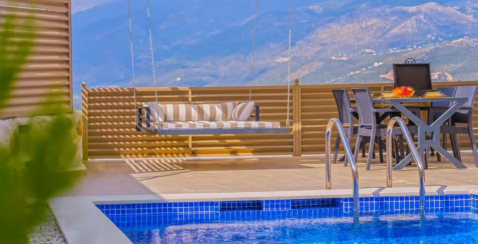 Havuz ve Bahçe: Korunaklı özel yüzme havuzu, şezlong, güneş şemsiyesi, bahçe oturma grubu, bahçe yemek masası, barbekü, salıncak bulunmaktadır.