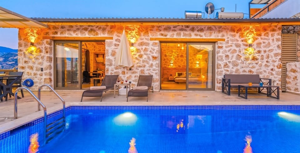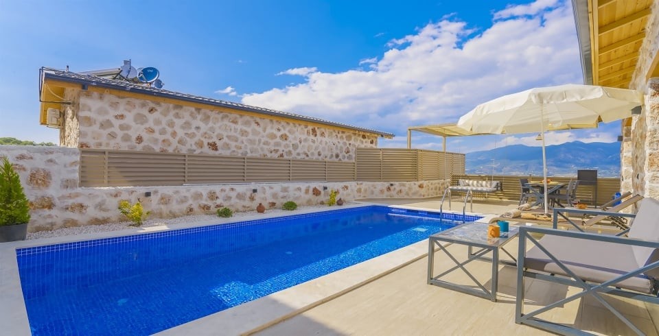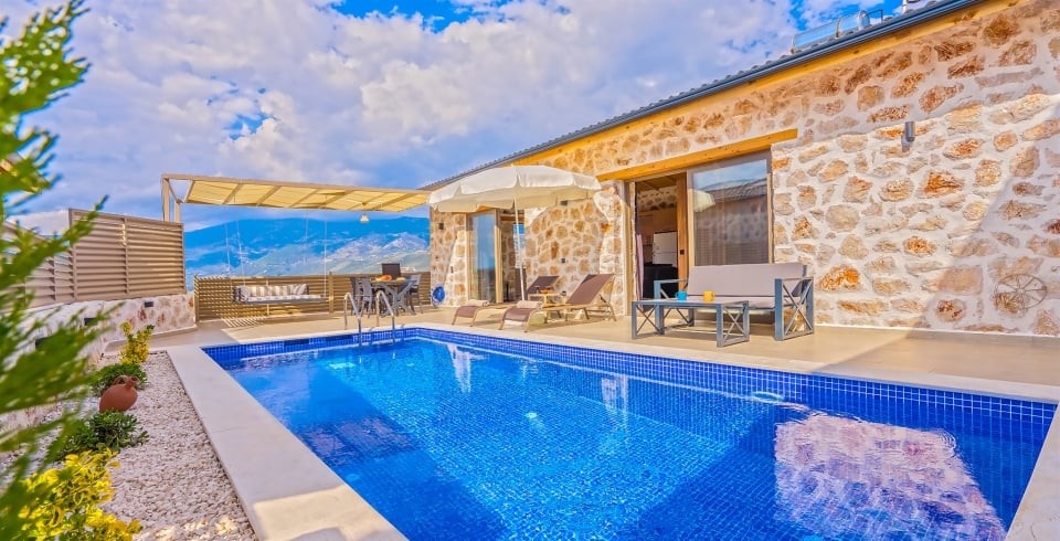 Villa Dio, Kalkan Yeşilköy Bölgesi'nde yer alan doğa manzaralı temiz havaya sahip korunaklı villamız 1 yatak odalı ve 2 kişilik konaklama kapasitesine sahiptir. Villa Dio balayı çiftlerimiz için oldukça idealdir. Villamızın modern tasarıma sahip yatak odasında jakuzi bulunmaktadır. Sevdiğiniz ile birlikte şehir gürültüsünden uzak, keyifli bir tatil için Villa Dio'yu tercih edebilirsiniz.