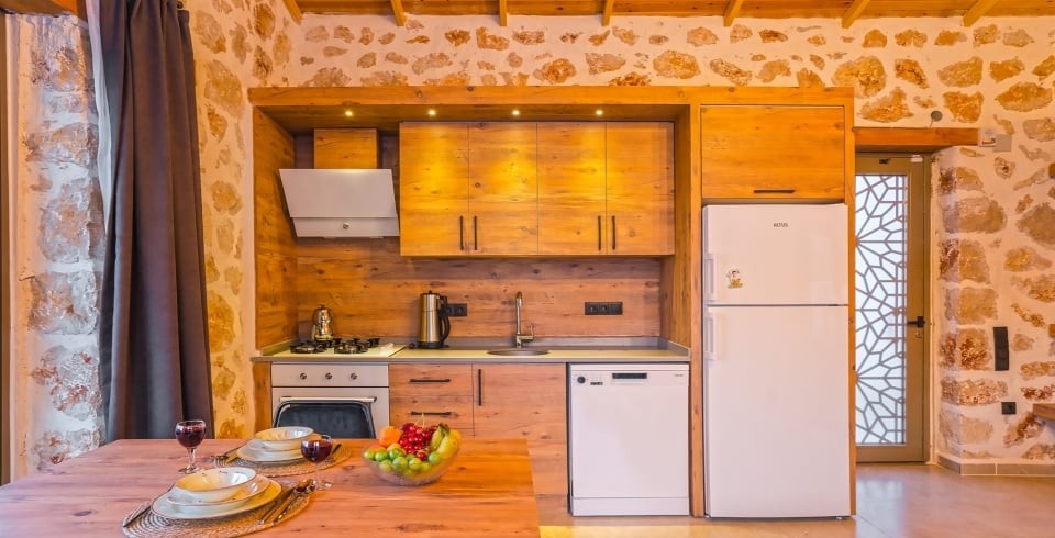 Mutfak : Aydınlık ve ferah eksiksiz dizayn edşlmiş Amerikan mutfak içerisinde buzdolabı, bulaşık makinesi, çamaşır makinesi, ocak, fırın, su ısıtıcısı, yemek takımı ve yemek pişirme araç gereçleri yer almaktadır.