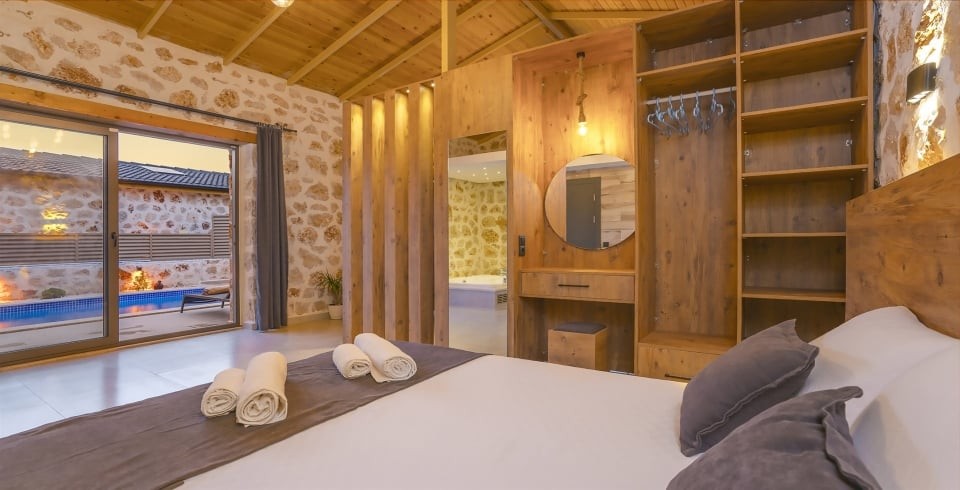 1. Yatak Odası: Bir adet çift kişilik yatak ,klima, jakuzi, komodin, elbise dolabı, makyaj masası, banyo ve tuvalet bulunmaktadır.