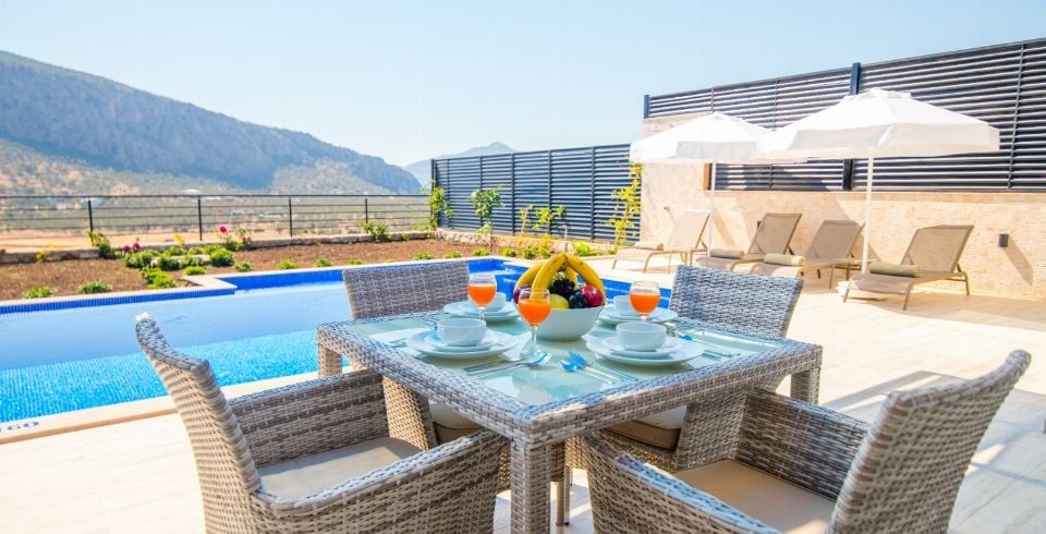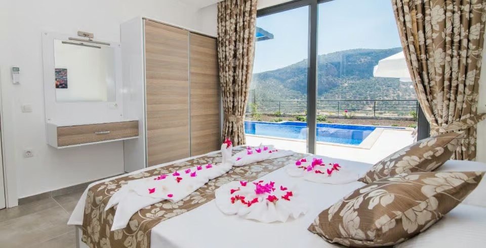 Kalkan’ın Ulugöl mevkiinde yer alan, yaz aylarının vazgeçilmezi olmaya hazır muhafazakar, kiralık nefis mi nefis muhteşem deniz manzaralı korunaklı dubleks villamız ebeveyn banyolu, 2 adet yatak odalı 4 kişi konaklama kapasitesine sahiptir. Villalarımızı tesettürlü ve muhafazakar ailelerin tekrar tekrar tatil mekanı olarak Akdeniz Villalarını tercih etmelerinden müşteri memnuniyetini anlayabilirsiniz. Dış kısmı muhafazakar olan villamızın sonsuz havuz ve havuz terası korunaklı olup, dışarıdan görünmemektedir. Doğa içerisinde sessiz – sakin, huzurlu, şehrin gürültüsünden uzak villamız sonsuz havuzlu, çardağı bulunan, korunaklı olmasından rahat hareket edebileceğiniz geniş bahçeli villamız hem balayı çiftlerimize hem de çekirdek ailelerimize uygun olarak tasarlanmıştır. Villamızın güzel özelliklerinden bahsedecek olursak geniş bir bahçeye sahip. Bu bahçede ise üzeri kapalı yemek masası bulunmaktadır. Süit yatak odasında bulunan jakuzi ile tatil keyfinize keyif katabilirsiniz ayrıca bu odamız havuza direkt çıkışlıdır ve doğa manzaralıdır ve Villa Diriliş modern Amerikan mutfağına sahiptir. Modern villamıza siz misafirlerimizi bekliyor, şimdiden keyifli tatiller dileriz.