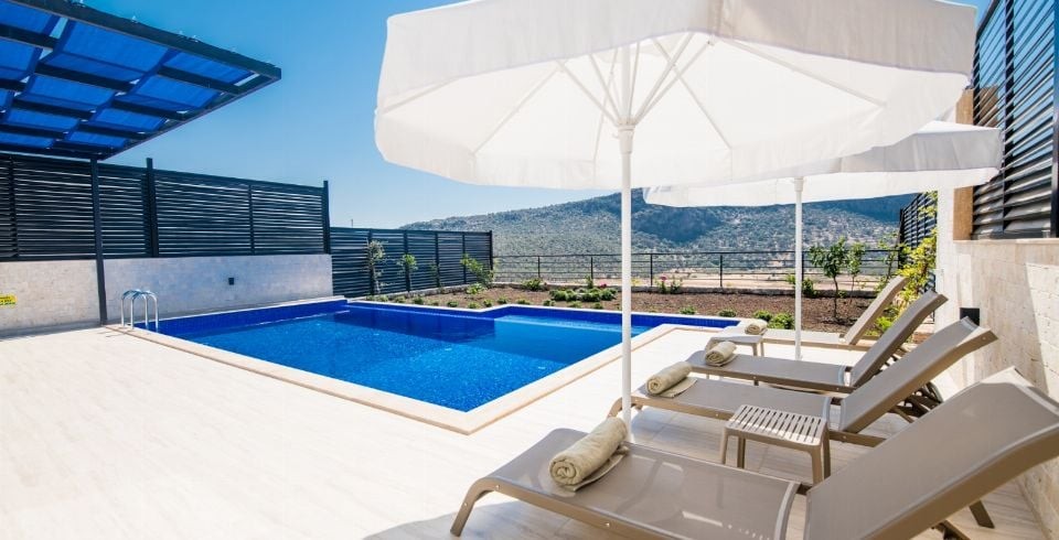 Havuz : Villamızın havuzu ise etrafı dışarıdan görülmeyecek şekilde korunaklı olup sizlere huzurlu ve keyifli havuz deneyimi sunmaktadır. Size özel muhafazakâr yüzme havuzu, şezlong keyfi ve şemsiye ile yazın en güzel günlerinde sizleri bekliyor.
