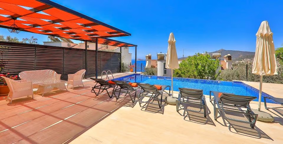 Kalkan Kızıltaş Bölgesinde bulunan 3 yatak odalı 6 kişilik Özel yüzme havuzlu villamız Kalkan merkezine ve plajlarımıza yakın konumda bulunmaktadır. Villamızdan Patara ve Kaputaş Plajlarımıza ulaşımda yaklaşık olarak 15 dk. mesafede bulunmaktadır. Villamızın Havuz ve havuz terası 6 kişi için gayet yeterli bir alana sahiptir. Aileler ve arkadaş grupları için son derece ideal bir seçenek olacaktır.