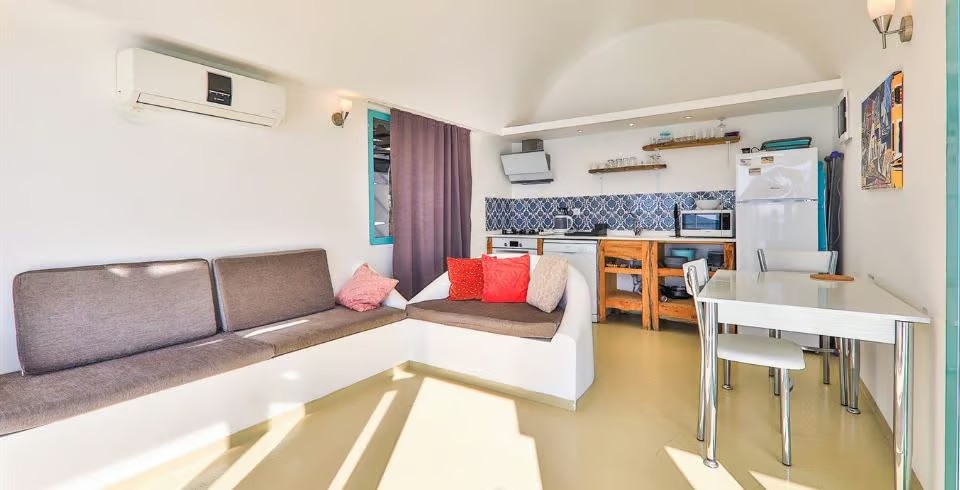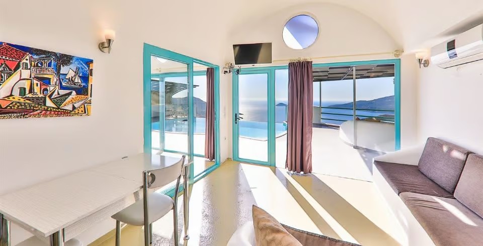 Salon : Villa Dome 1’in salonunda sizi şık bir oturma grubu ile klima, televizyon, internet, uydu, koltuk, sehpa ile ferah bir salon bekliyor olacaktır. Havuz terasına çıkış yapılmaktadır.
