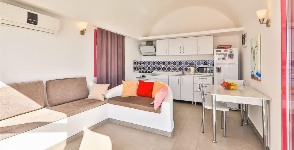 Villamızın geniş Amerikan mutfağı ile sizlere kendi evinizin mutfağı gibi hissettirecek. Ayrıca mutfakta klima, bulaşık makinası, buzdolabı, çamaşır makinası, mikrodalga fırın, tost makinası, ekmek kızartma, su ısıtıcısı, fırın, 4`lü ocak seti ve 2 kişilik geniş yemek masası ile tava tencere vb. mutfak araç gereçlerini kullanma fırsatını sizlere sunuyoruz.