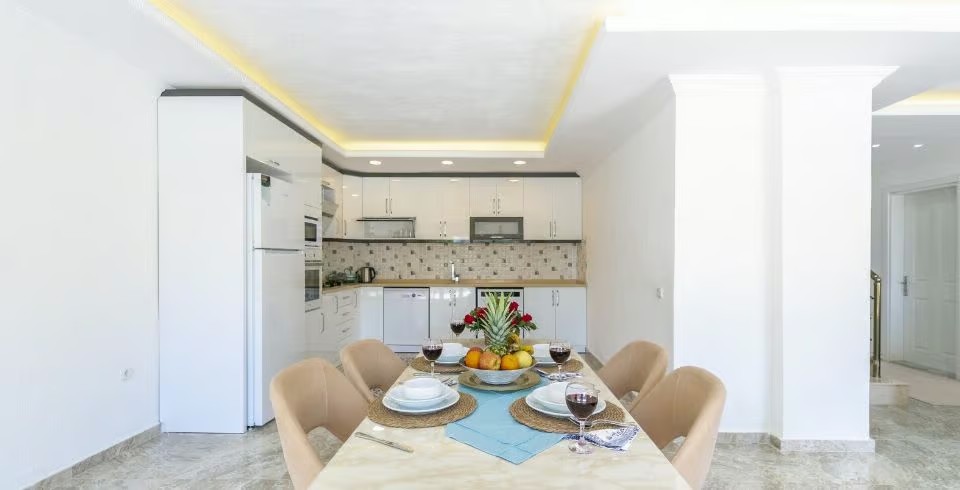 Mutfak: Villamızın mutfağında buzdolabı bulaşık makinası, çamaşır makinası, 4'lü ocak, ketıl, mikro dalga fırın, filtre kahve makinası yemek takımı bulunmaktadır.