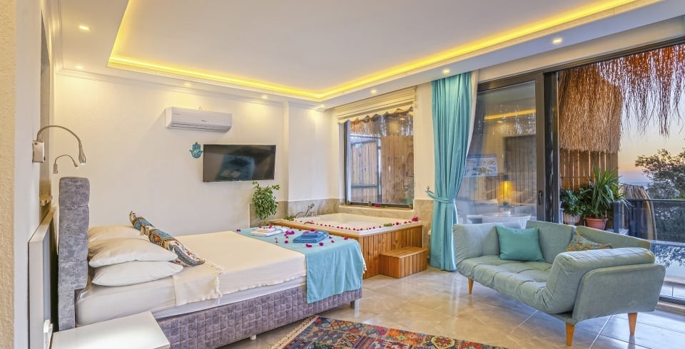 Villa Donna 2, Kalkan Üzümlü mevkiinde konumlanan, 2 kişi kapasitesine sahip romantik bir villadır. 1 yatak odası ve 1 banyosuyla balayı çiftleri veya sakin tatil isteyenler için idealdir. Yatak odasında bulunan jakuzi, özel ve huzurlu bir dinlenme alanı sunar.