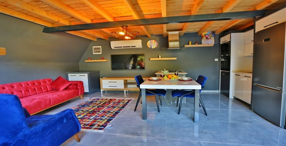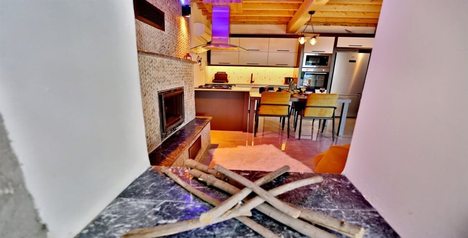 Mutfak : Bir evin mutfağında olması gereken her şeyi villamızda bulabilirsiniz. Modern Amerikan mutfağımızda buzdolabı, çamaşır makinesi bulaşık makinesi, 4’lü ocak, fırın, mikrodalga fırın, elektrikli su ısıtıcısı, fırın, çatal-bıçak takımı, tencere-tava takımları gibi bütün mutfak araç-gereçleri eksiksiz bir şekilde bulunmaktadır.