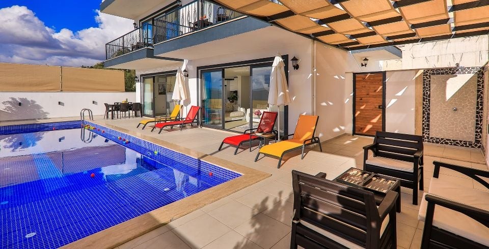 Kalkan’ın Kördere mevkiinde yer alan, yaz aylarının vazgeçilmezi olmaya hazır muhafazakar, kiralık, muhteşem deniz manzaralı villamız 2 yatak odalı 4 kişi konaklama kapasitesine sahip, hem balayı villası olarak hem de çekirdek muhafazakar ailelerimiz için tasarlanmıştır. Villa Dream House muhafazakar villa kategorisinde bulunmakta olup dışarıdan görünmeyen bir villadır. Villamızın ayrıca süit yatak odasında jakuzi bulunmakta olup balayı villası olarak düşünenler için son derece ideal bir seçenek olacaktır. Villamızın konumundan bahsedecek olursak Kalkan Merkez’e oldukça uygundur. Market ve restoran gibi ihtiyaçlarınız için ise araç ile 5 – 10 dakika mesafe uzaklığındadır. Büyük bir havuz terasına ve oldukça geniş bir havuza sahip olan villamız eşsiz bir deniz manzarasına sahiptir. Korunaklı villamız muhafazakar ailelerin sıklıkla tercih ettiği, tekrar tekrar tatil mekanı olarak Akdeniz Villalarını tercih ettiklerinden müşteri memnuniyetini anlayabilirsiniz. Şimdiden keyifli tatiller diliyor, sizleri Villa Dream House’a davet ediyoruz.