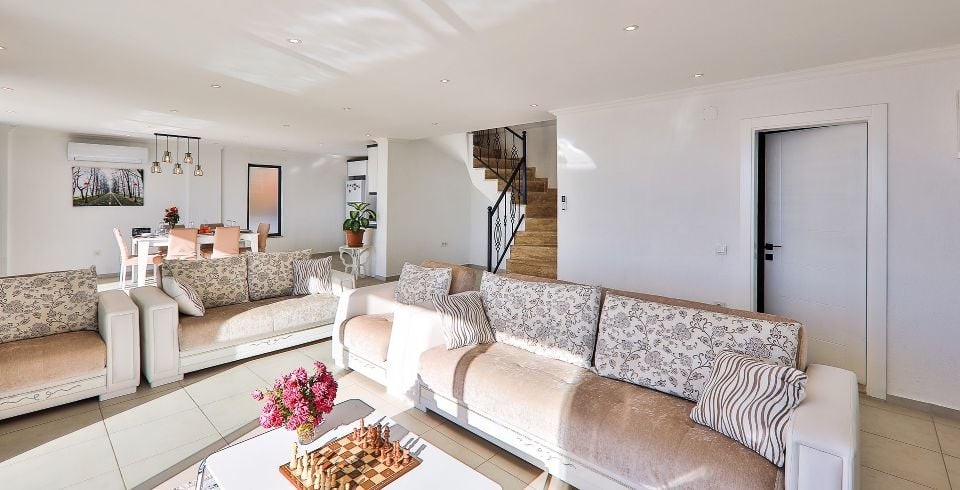 Salon : Villa Dream House’un salonunda sizi şık bir oturma grubu ile klima, televizyon, internet, uydu, koltuk, sehpa ile ferah bir salon bekliyor olacaktır. Havuz terasına çıkış yapılmaktadır.