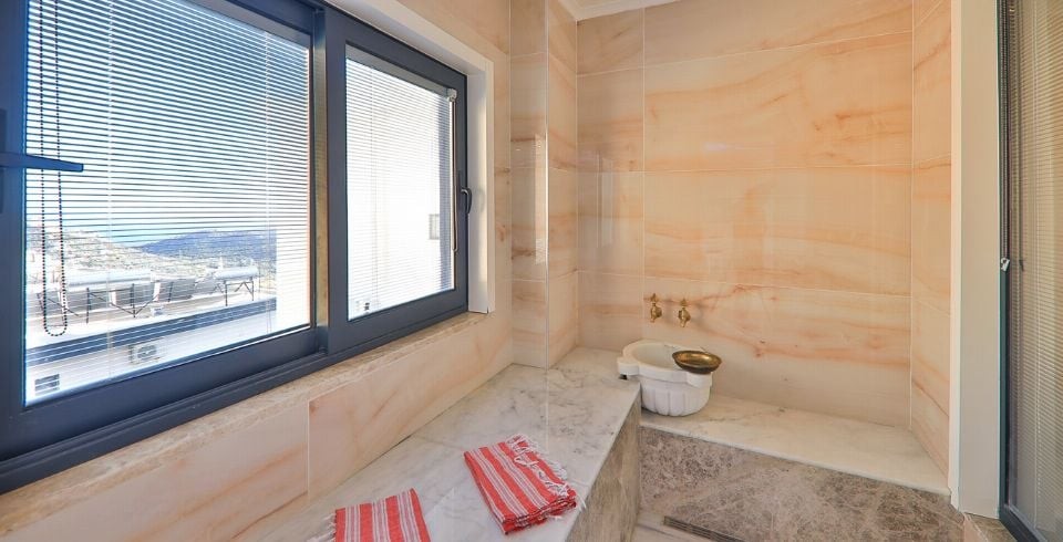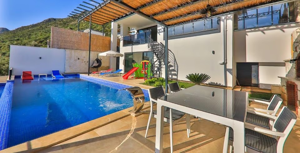 Kalkan Kördere bölgesinde full deniz manzarasına sahip oldukça keyifle döşenmiş Lüks muhafazakar kiralık villamızdır. Villamız geniş havuz terası ve salon mutfağı ile diğer kiralık villa seçeneklerimiz arasında öne çıkan özelliklerindendir. Villamızın yatak odası içerisinde kış aylarına uygun dizayn edilmiş ısıtmalı kapalı havuzu ve sauna hamam bulunmaktadır. Ancak iç havuzun ısıtma sistemi kış aylarında açılmakta olup kullanıma sunulmaktadır. Diğer aylar için ise normal havuz olarak kullanım sağlanmaktadır. Villamızdan Kalkan Merkeze araç ile 8-10 dk. arasında ulaşım sağlanmaktadır. Villamızın 2 yatak odalı 4 kişilik kapasiteye sahiptir havuz terası katında oyun salonu bulunmaktadır.