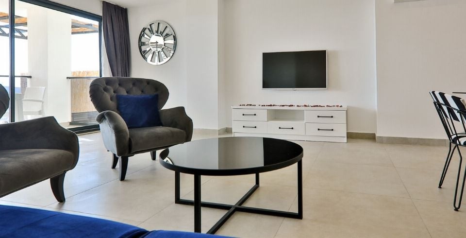 Salon : Salon içerisinde oturma grubu, TV, klima, sehpa bulunmaktadır. Havuz terasına çıkış yapılabilmektedir.