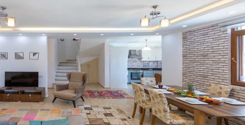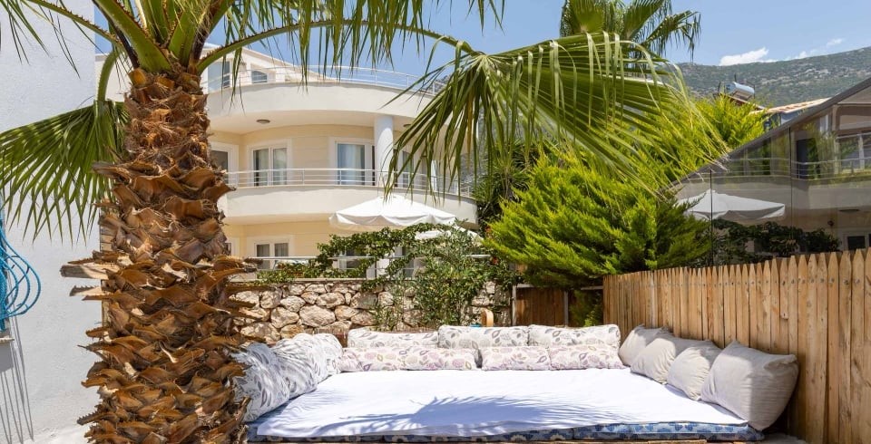 Villa EA, Kalkan bölgesinde yer almaktadır. 8 kişi kapasitesine sahip villamızda 4 yatak odası bulunmaktadır. Kalabalık arkadaş grupları ve geniş aileler için ideal seçeneklerimiz arasındadır. Kalkan merkeze ve plaja yürüme mesafesinde yer alan villamız aynı zamanda deniz manzaralıdır. Özel yüzme havuzu ve geniş terası bulunmakta olan villamızın havuz terasında çocuklar için oyun parkı da yer almaktadır. Kiralık villa EA çevere'de bulunan gezilecek ve görülecek yerlere olan mesafesi sayesinde tercih sebebidir.