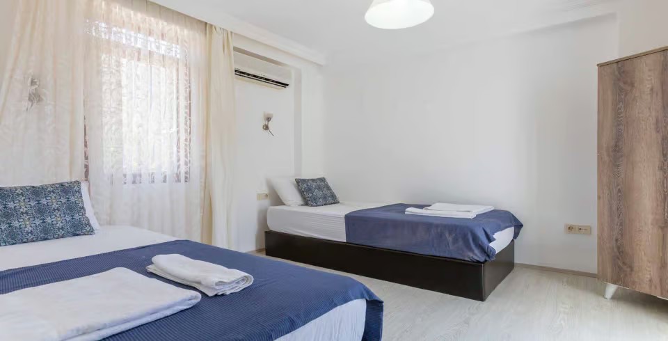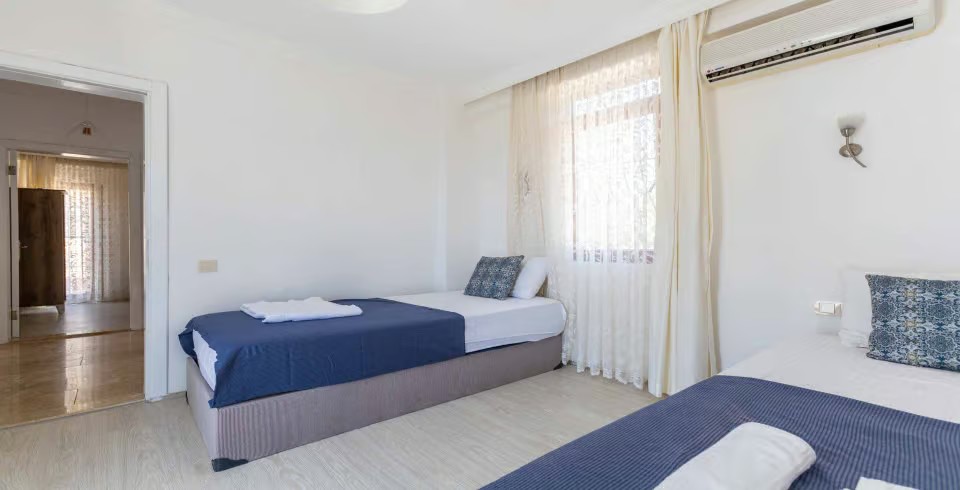 3. Yatak Odası : 2 adet tek kişilik yatak, klima, komodin, elbise dolabı, makyaj masası, ortak kullanım banyo ve lavabo bulunmaktadır.