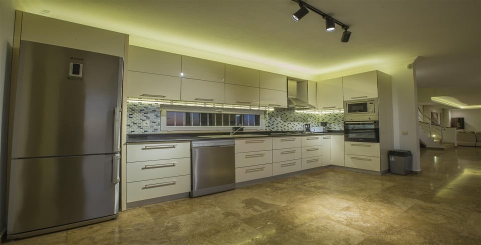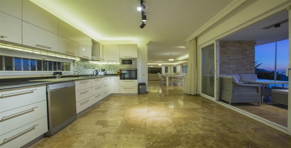 Mutfak : Modern Amerikan mutfak, buzdolabı, bulaşık makinası, çamaşır makinası, ankastre fırın, mikrodalga fırın, ankastre 4’lü ocak, elektrikli su ısıtıcısı (ketıl), ekmek kızartma makinası, 14 kişilik yemek takımı, tava, tencereler, çatal, bıçak vs.