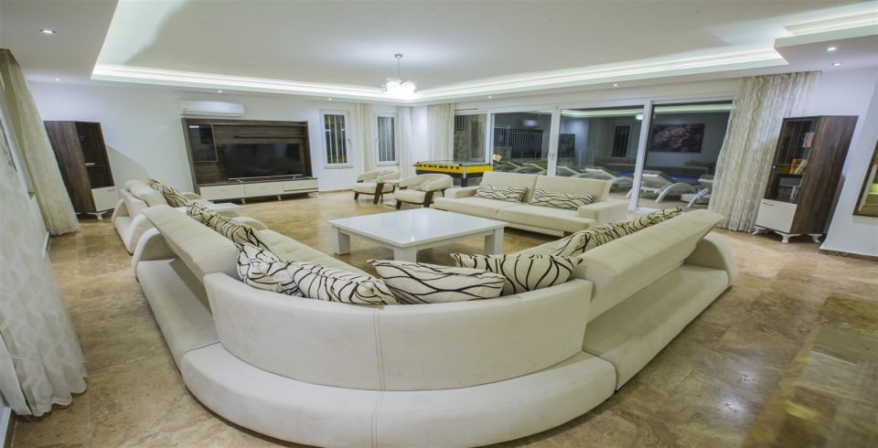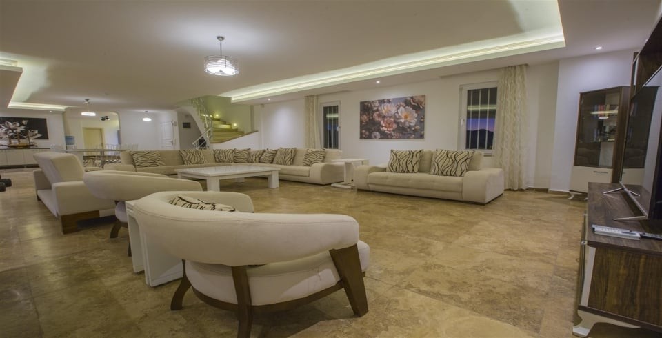 Salon : (Havuz katında), oturma grubu, uydu alıcı, TV, klima, lavabo, ütü, ütü masası, elektrik süpürgesi, havuz kenarına çıkış ve kablosuz modem, tuvalet bulunmaktadır.